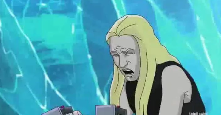 Skwisgaar ignores him, and looking quite distressed, attempts to "revive" him while yelling "comes backs to me goddammit!" Eventually, Toki slaps away the defibrillator, which has a short circuit and causes the gigantic stage made of ice to melt and kill several people with pointy ice guitar sculptures. Eventually, the whole stage collapses, taking several victims.