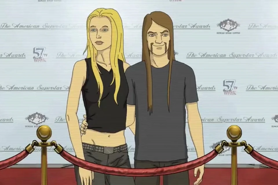 A TV show hostess talks about the members of Dethklok and their relationships with the opposite sex, mentioning that they have a different partner for every day of the week and wonders out loud if any of them will ever settle down. She recalls Nate-Becca, and how Rebecca fell down several flights of stairs and got so injured she was in a coma, and Nathan supported her through the ordeal. However, recently Rebecca was spotted canoodling with billionaire hotel heir Walt Perkins, leaving Nathan behind.