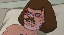 After closing a bar down, the band heads home on the Murdercycle with each member in one of its four sidecars, and Nathan drunk at the wheel. A rowdy Murderface stands up during the trip and slams into a signpost. Ejected, his face grinds into the road until he finally comes to a stop. A passing vehicle runs over his legs.