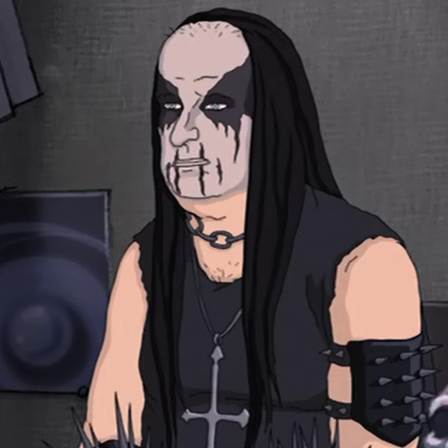 He actually plays a demo tape of in the store, which Dethklok listen to. The demo tape is seemingly a parody of black metal, as it features nonsensically-growled lyrics and loud, boisterous, clattering instrumentals. On top of being passionate about black metal, he is vocally a supporter of paganism, and views himself as a misunderstood pagan- another common theme amongst classic Norwegian black metal fans.